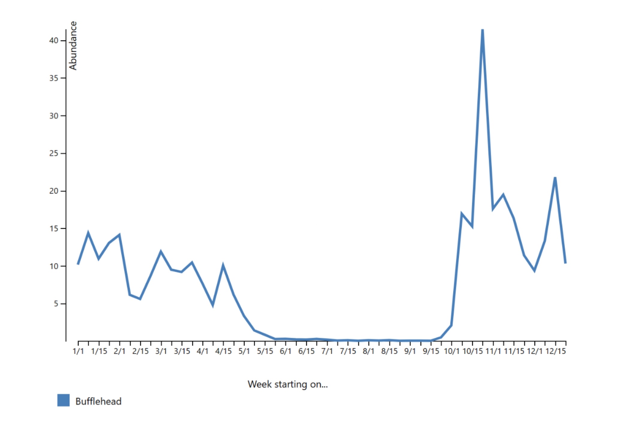 Audubon models suggest that as the climate warms, the Bufflehead breeding range is likely to decrease and the wintering range will increase by 2080. Wintering populations in the Chugach Region are also likely to increase in the future.