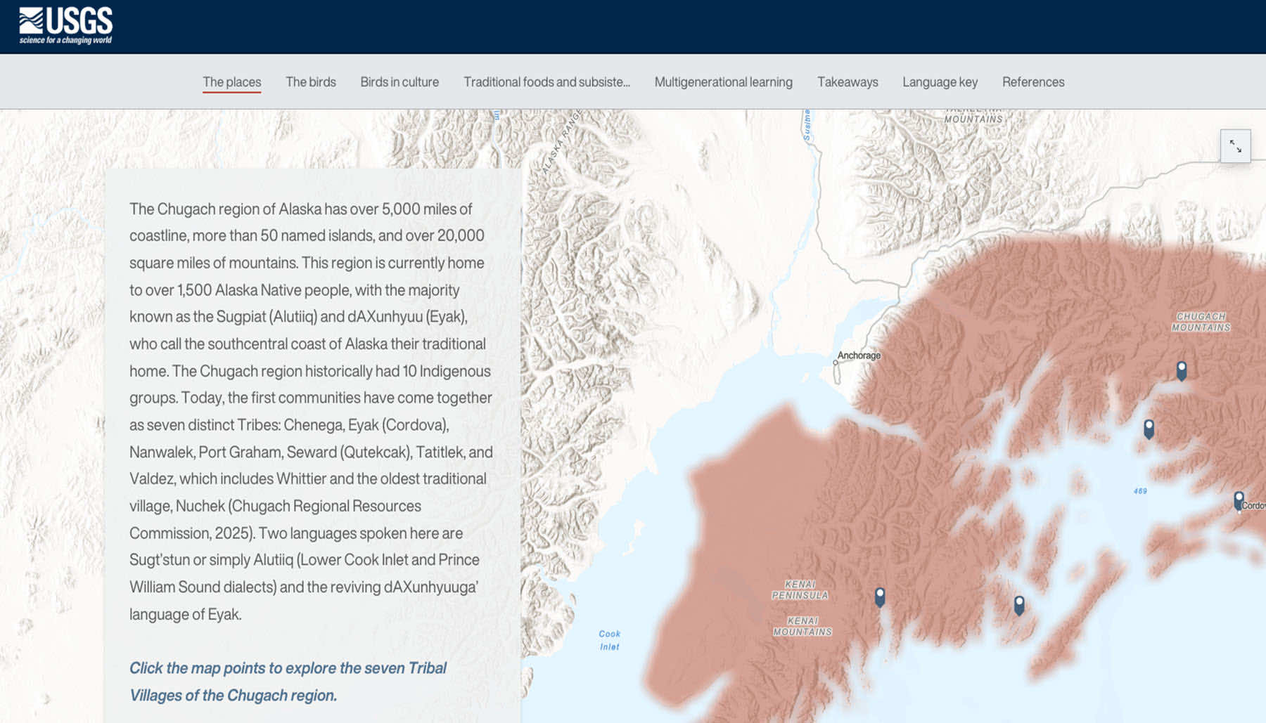 To place Chugach bird knowledge within a broader geographic context, explore this USGS interactive story map, which traces migratory pathways across continents and highlights the Indigenous communities connected by these seasonal movements. Use it as a complementary, big-picture lens alongside Chugach perspectives—showing how birds link homelands, waters, and lifeways far beyond any single region.