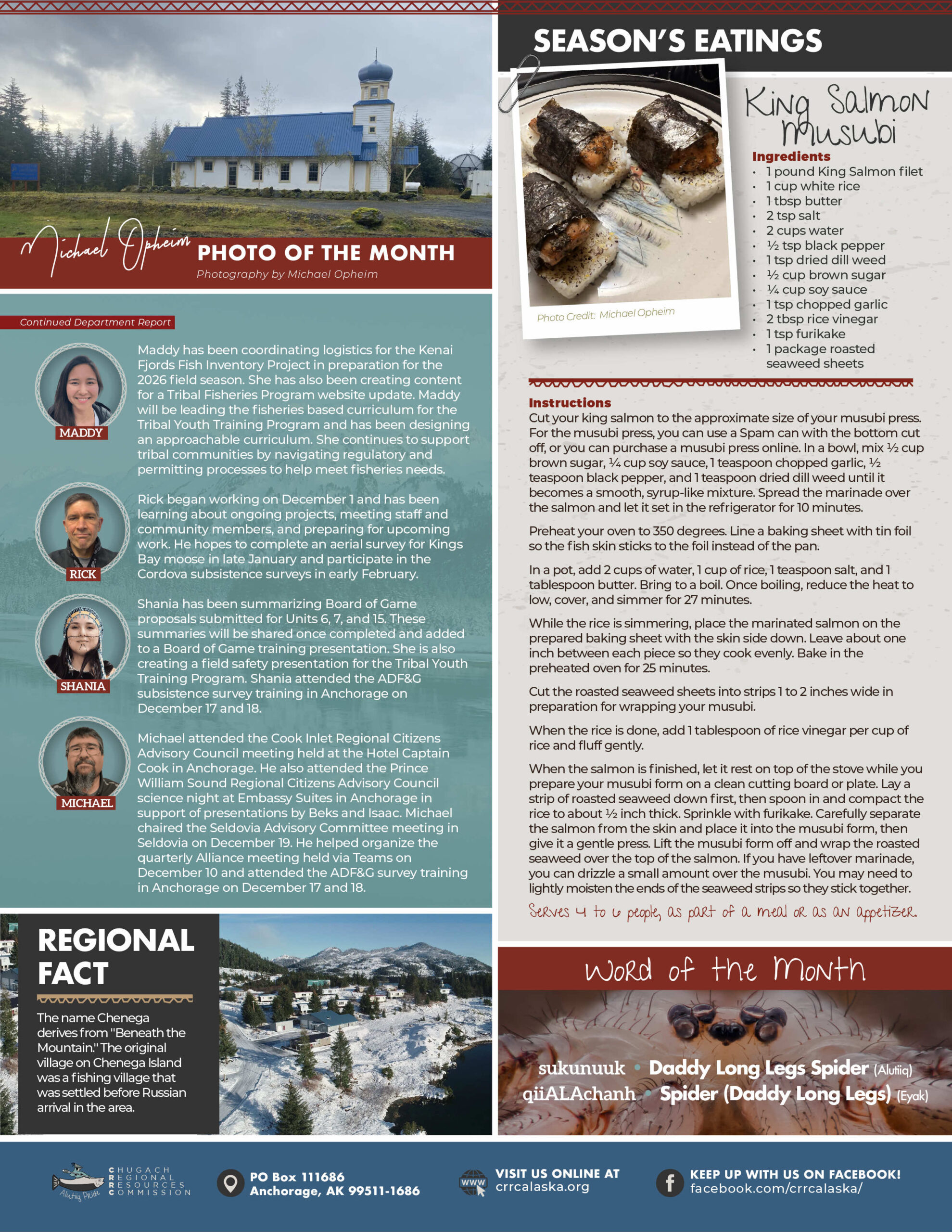In an effort to enhance food security in the region, CRRC used CDC grants funds to remaster the recipe pages to include nutritional values provided by the ANTHC as well as translations in various dialects, when available, from the Chugachmiut Heritage Preservation.