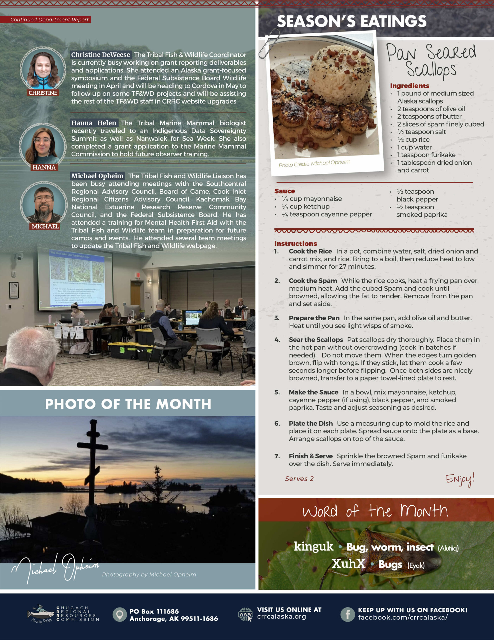 In an effort to enhance food security in the region, CRRC used CDC grants funds to remaster the recipe pages to include nutritional values provided by the ANTHC as well as translations in various dialects, when available, from the Chugachmiut Heritage Preservation.